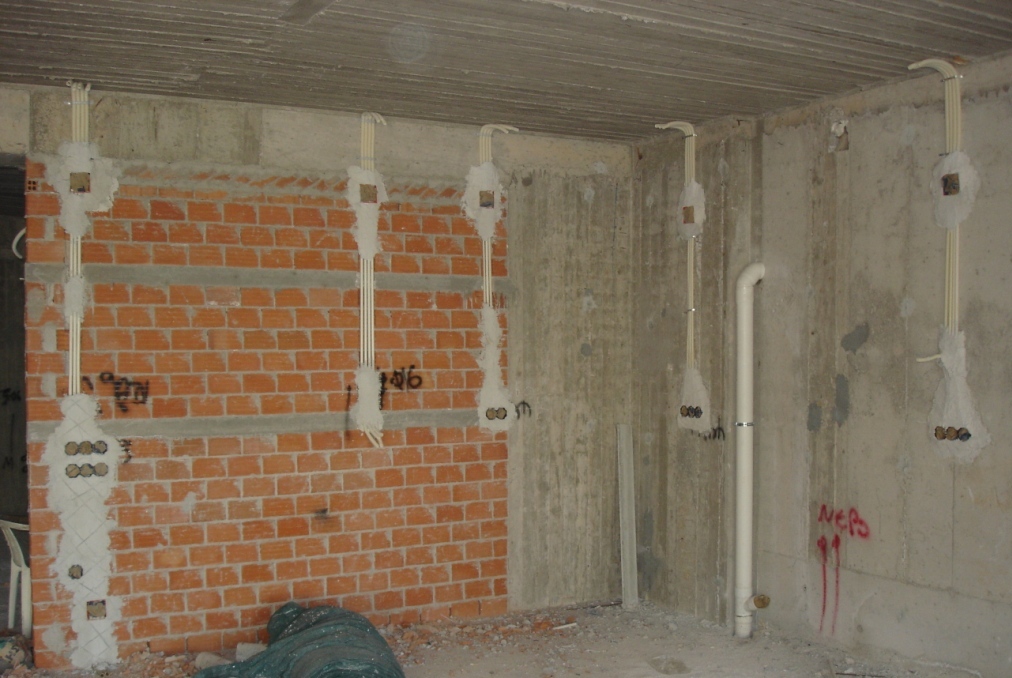 - Στήριξη των σωλήνων με Λάσπη στα χαραγμένα τούβλα και τοποθέτηση των κουτιών διακλαδώσεων και διακοπτών σε αυτά.